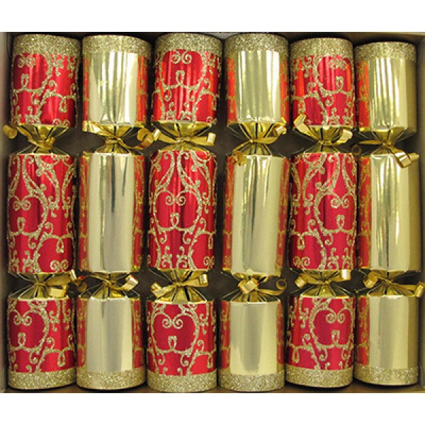 8" Gold Red Glitter Mini Crackers